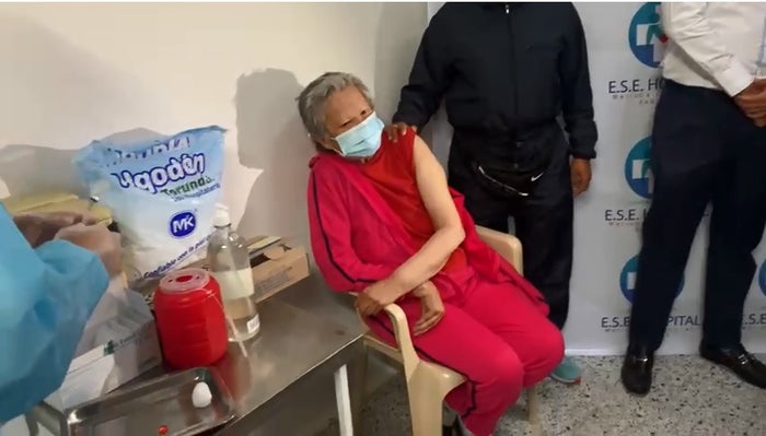 María Cecilia Rodríguez Hurtado, próxima a cumplir 83 años, fue la primera en ser vacunada contra la covid-19 en esta sección del país.