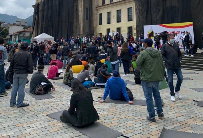 El cabildante Manuel Sarmiento, por su parte, rechazó la propuesta de declarar conmoción interior: "No es una forma de resolver este problema. Es echarle gasolina al fuego porque reduciría la poca democracia que hay en el país, dándole poderes extraordinarios al presidente. También da el mensaje de que este es un problema que hay que atenderlo con un enfoque militarista, y lo que hay que hacer es escuchar a los jóvenes, que es justo lo que estamos haciendo hoy aquí en la Plaza de Bolívar".