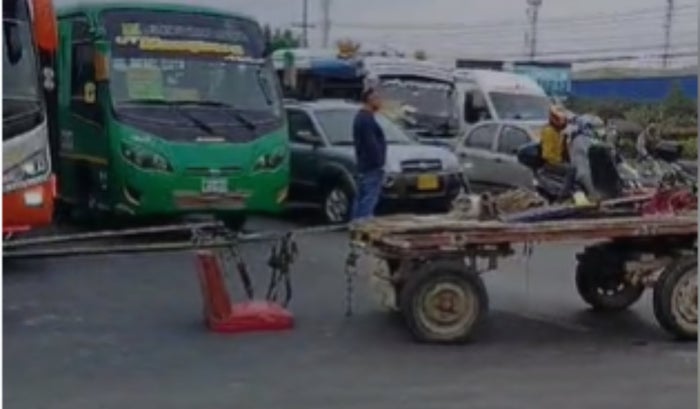 El trancón por este corredor es bastante extenso, pues las personas han atravesado varias carretas con algunas cuerdas para evitar el paso de cualquier tipo de vehículos, lo que afecta a aquellos que se desplazan a lugares cercanos.