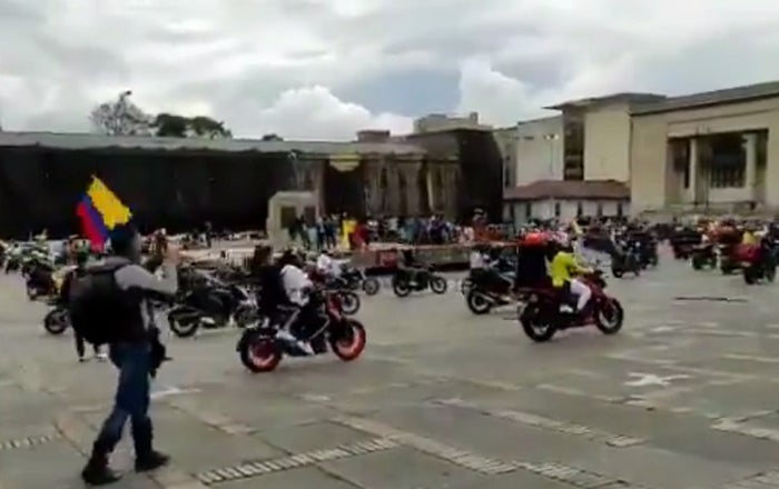 Poco después, aproximadamente 300 motociclistas se unieron a las manifestaciones en la plaza y expresaron su descontento con la actual situación del país, dando varias vueltas y tocando las bocinas de manera pacífica.