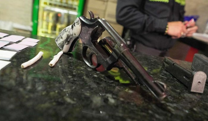Durante las diligencias, las autoridades incautaron 7 armas cortopunzantes, 2 armas de fuego tipo revólver, 3 proveedores para pistola, 96 litros de icor de contrabando y 42 botellas de licor adulterado.