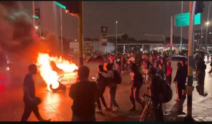 Se presenta una protesta en el barrio Villa Javier, en la localidad de San Cristóbal Sur, en Bogotá. Los manifestantes exigen justicia por el caso de un profesor que presuntamente abusó de menores de edad en un jardín del ICBF.