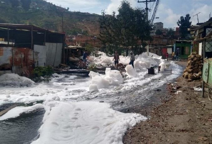 De acuerdo con el alcalde del municipio, Julián Sánchez, este fenómeno proviene de los químicos acumulados en algunos caudales y riachuelos, que llegan desde empresas de plástico y que se mezclan con el agua luego de llover.