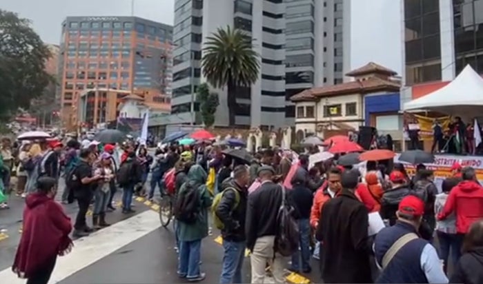 Se reúnen en la sede principal de la Fiduprevisora para manifestar su descontento por la mala implementación del nuevo modelo de salud para los profesores, el cual ha cambiado diferentes puntos clave con relación al sistema implementado anteriormente.