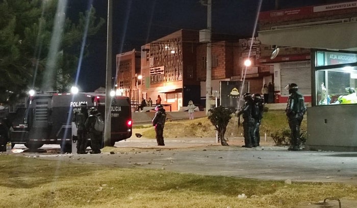 "Se presentan agresiones por parte de algunos sujetos contra la misma Fuerza Pública e instalaciones del CAI que se encontraba cerca a la institución educativa. De manera inmediata tuvimos que reaccionar con nuestro equipo y nuestra Unidad Móvil de Mantenimiento del Diálogo y el Orden, con el fin de evitar hechos violentos que trascendieran en los menores que se encontraban en el lugar de los hechos", agregó la Policía.