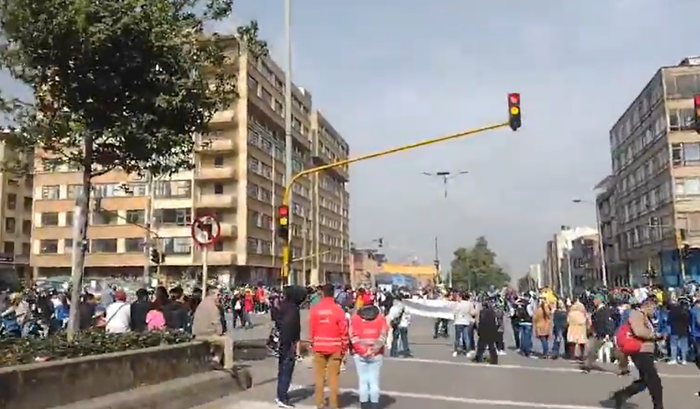 La manifestación, que se desarrolla de manera pacífica, generó afectaciones en el transporte público. Las estaciones de Transmilenio de Calle 22, Calle 19, Av. Jiménez y Tercer Milenio han sido cerradas temporalmente.