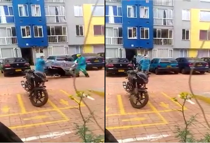 La extraña camilla -revestida con el plástico transparente para evitar el contacto con los médicos aparentemente- quedó arruinada por el impacto. Sin embargo, en todo caso hoy la sociedad colombiana le perdona todo a los médicos por su labor heroica.