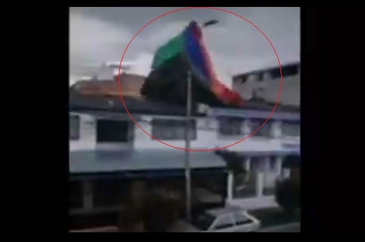 La situación se presentó en un parque del barrio El Sosiego, de la localidad Rafael Uribe Uribe, donde una atracción inflable no soportó un fuerte ventarrón que terminó elevándola por los cielos.