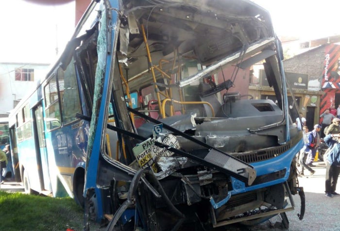 Un bus del Sistema Integrado de Transporte Público, de la ruta T 11, al presuntamente perder el sistema de frenos en una empinada calle de la localidad Ciudad Bolívar -en el sur de Bogotá- en la mañana de este martes chocó brutalmente con otros dos más de la misma compañía, provocando más de 30 heridos, entre ellos cuatro con cierta gravedad.