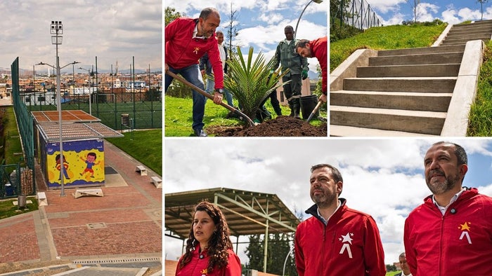 Collage Alerta - X: IDRD. Bogotá estrena Fase II del Parque Santa Lucía: diversión, deporte y naturaleza
