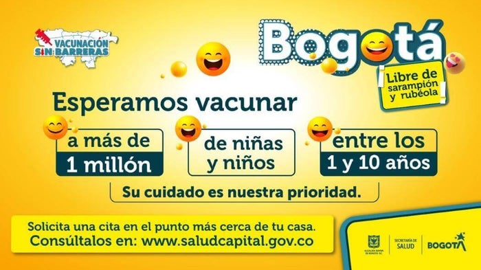 Como parte del programa 'Vacunación sin Barreras', la Secretaría de Salud de Bogotá ya puso a disposición de todos los padres y/o representantes el agendamiento de citas para vacunar de forma gratuita a sus hijos entre 1 y 10 años de edad contra el sarampión y la rubéola.