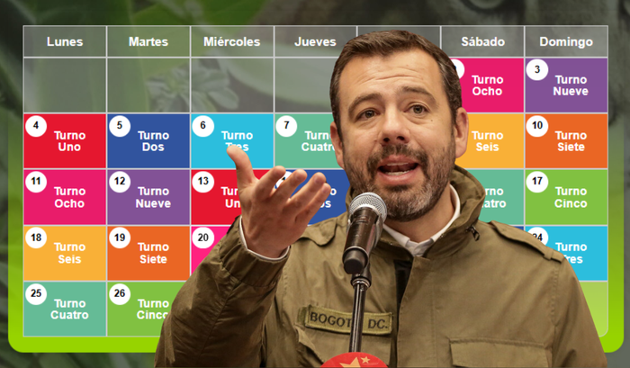 - Turno 7: (sábado 18 de enero) Fontibón, Kennedy y municipios como Funza, Mosquera y Madrid.