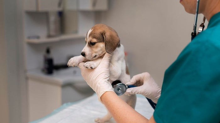 Veterinario atendiendo a perrito