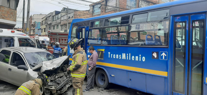 Este martes cinco de abril, Transmilenio, reportó un accidente de tránsito entre un bus zonal y un vehículo particular en la carrera 68b con calle 69 en sentido occidente - oriente en el barrio Bosa Santa Fe.