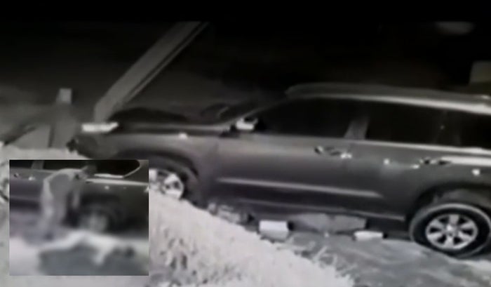 En la grabación se puede observar como una camioneta aparece en la escena y se estrella contra un poste, posteriormente llega corriendo un hombre, que abre la puerta del conductor, baja a la mujer como si fuera una 'muñeca de trapo', la tira al suelo y le pega.
