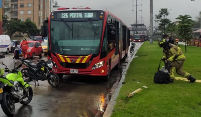 "Bomberos de la estación Chapinero brindaron atención prehospitalaria a una persona que resultó lesionada por la colisión que se presentó entre un articulado de Transmilenio y una motocicleta en la carrera 30 con calle 51. El paciente fue entregado a una móvil de la Secretaría de Salud", informó el cuerpo de bomberos.
