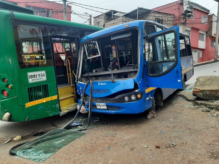 El choque de un bus del Sistema Integrado de Transporte SITP y un alimentador de TransMilenio en las horas de la mañana de este jueves 21 de abril de 2022 provocó 16 heridos, entre ellos una niña de cuatro años, en una empinada vía del sur de la capital del país.