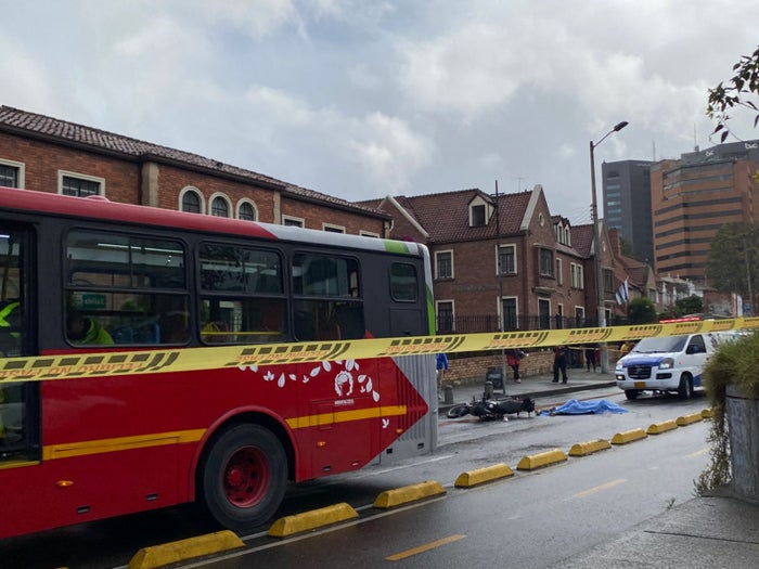 Este lunes se presentó un choque entre un bus del sistema de transporte público Transmilenio y un motociclista, en la Carrera Séptima con calle 69, que resultó en la muerte del 'motero', tras ser arrollado por el conductor del sistema, en hechos ocurridos a las 7:30 de la mañana.