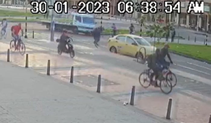 Según se observa en las cámaras de seguridad de la zona, el accidente de tránsito se presentó a las 6:38 de la mañana en el sector de Aures en la localidad de Suba.