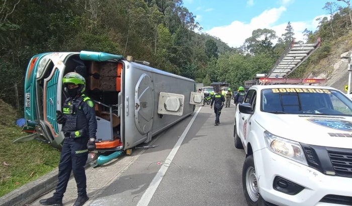 Bus municipal se volcó en la vía Bogotá- La Vega y hay 10 personas heridas
