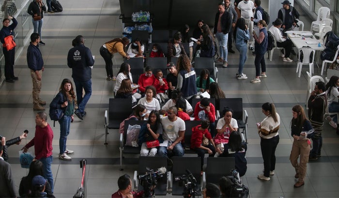 Algunos de los viajeros llevan más de 10 horas esperando en la terminal aérea de Bogotá.