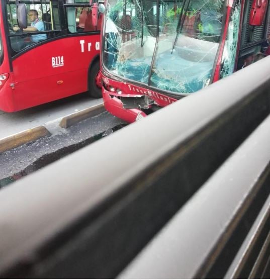 Los articulados se desplazaban en sentido norte- sur, por la Autopista Norte, cuando, al parecer, por exceso de velocidad de uno de estos choco al otro por detrás.