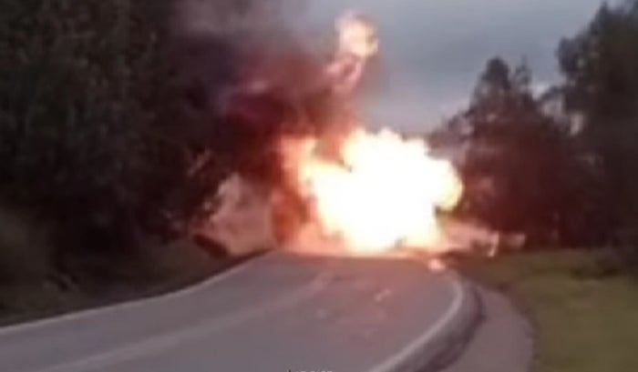 Viajeros alerta a los trancones: Cierran vía Ubaté - Zipaquirá, incendio de vehículo con pipetas de gas