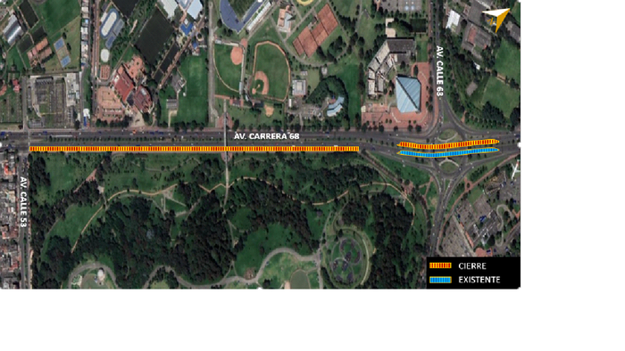 La Secretaría de Movilidad informó que los usuarios que circulen en sentido sur-norte, por la Avenida 68, podrán tomar la Calle 53 al oriente y la Avenida Carrera 60 al norte; para quienes circulen en sentido oriente -occidente por la Avenida Calle 26 y deseen dirigirse al norte, podrán tomar la Avenida Carrera 60.