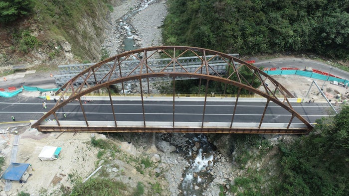 El puente, ubicado en el kilómetro 50+350 de la vía, cuenta con una longitud de 75 metros y un diseño de arco metálico con tablero inferior.
