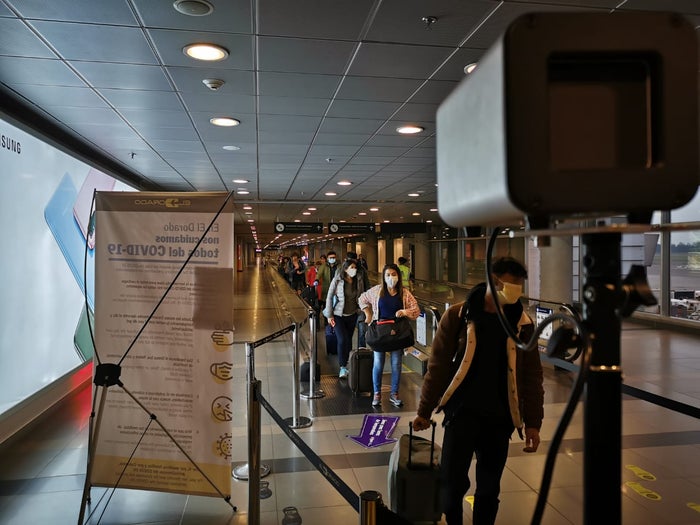 "Esta primera cámara se encuentra ubicada en la llegada de los vuelos internacionales y puede realizar la medición de la temperatura de hasta 15 personas por segundo (varía según la rapidez del tránsito de las personas), hecho que mejora los tiempos de los procesos médicos adelantados hasta el momento para el control del Covid-19", explicó el concesionario a través de un comunicado.