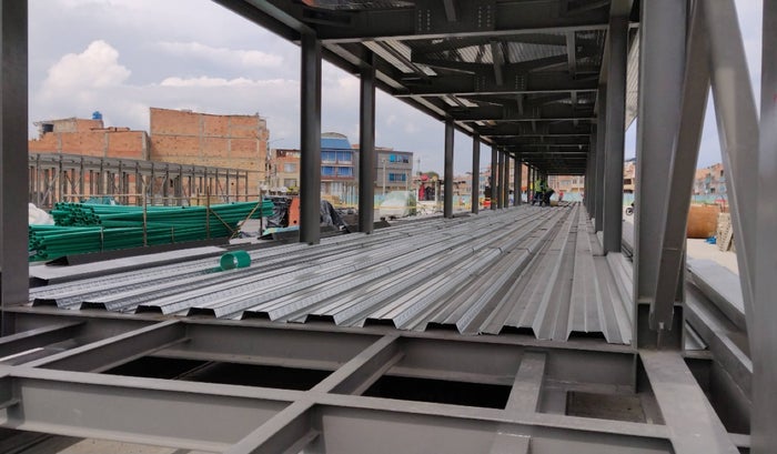 La lámina está conformada por paneles de acero de 20 centímetros de espesor, que se colocan sobre una estructura metálica. Una vez que la lámina esté completamente instalada, se procederá a la colocación del concreto de piso, que tendrá un espesor de 25 centímetros.