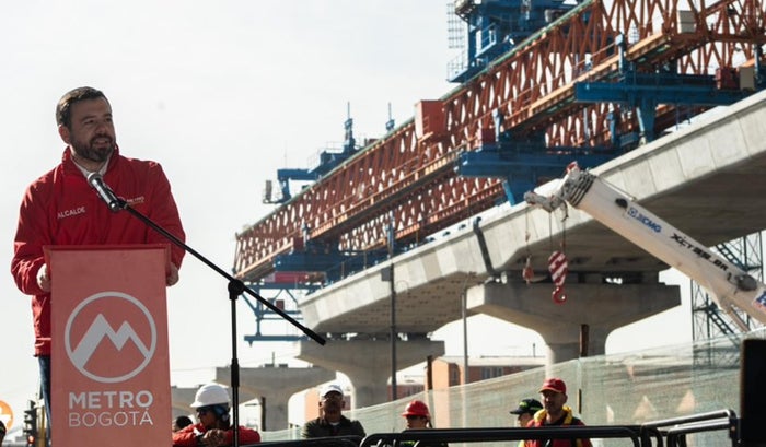 “Hoy está avanzando el viaducto en la avenida Caracas. Este es un hito en la construcción del Metro de Bogotá. La viga lanzadora instaló el primer vano entre las columnas de la calle 28”, explicó Galán.