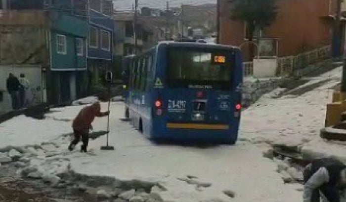 Granizada en San Cristóbal hundió buses y afectó viviendas en el sector: parecía nieve