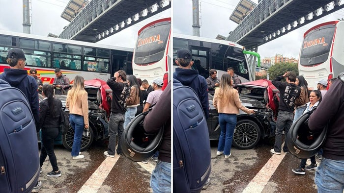 Estrellón múltiple en autopista Norte con calle 187: carro quedó como acordeón