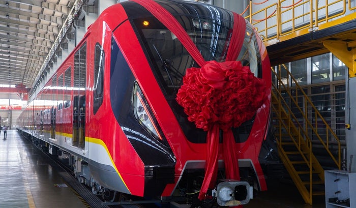 Según informó el mandatario, los seis vagones del primer tren salieron de la fábrica el 25 de julio, llegaron al puerto de Qingdao, en China, y allí fueron subidos al barco que arrancó el domingo 3 de agosto hacia Colombia.