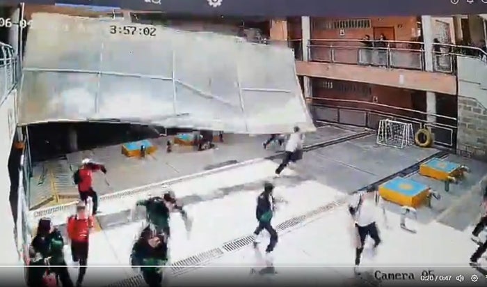 En la tarde del 4 de junio, un incidente alarmante ocurrió en el Colegio Friedrich Naumann, ubicado en la calle 171 con carrera 7 en Bogotá, cuando un domo se desplomó sobre un grupo de estudiantes, por los fuertes vientos que azotaron la ciudad. Una cámara de seguridad capturó el momento exacto del desprendimiento, evidenciando la fuerza de las ráfagas que causaron el colapso de la estructura.