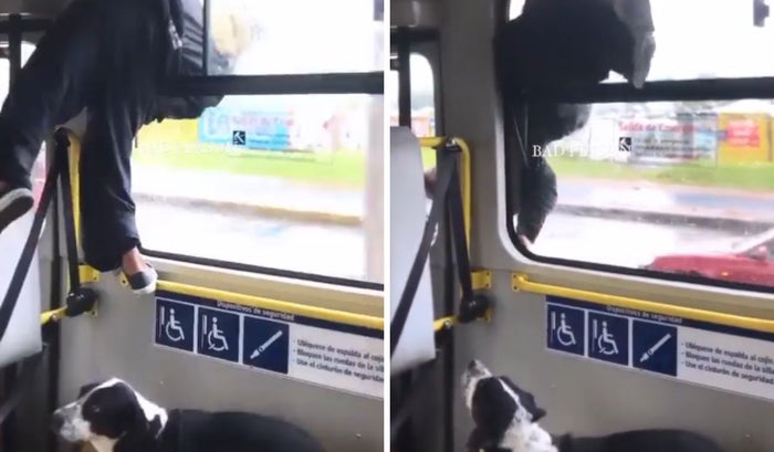 Por medio de redes sociales se han dado a conocer varios hechos que suceden en el día a día de los bogotanos, quienes graban con sus celulares algunos momentos curiosos en la ciudad. Uno de ellos se registró hace unos días, en el que un aparente habitante de calle sale por la ventana de un bus de TransMilenio que estaba en movimiento.