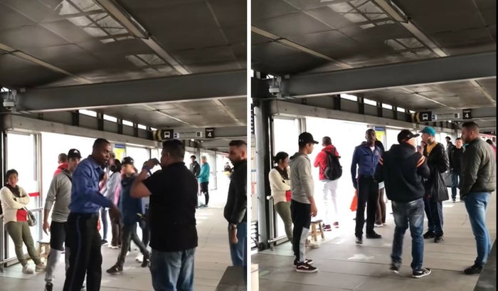 Durante la grabación se puede ver como algunas personas estaban saltando la registradora, mientras el hombre vestido con camisa azul que decía "Seguridad Privada" y cargaba una pistola de agua en su cintura, esperaba a la entrada de la estación con un porte intimidante.