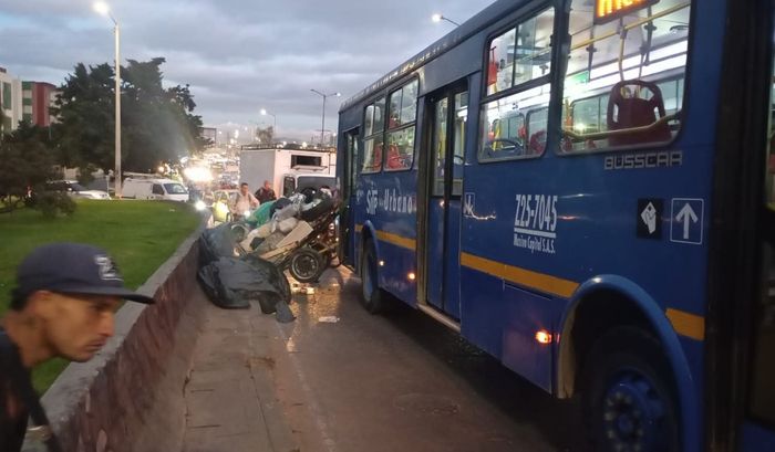 Un accidente de tránsito entre un bus del SITP y una carreta de reciclaje causó fuerte congestión este martes en la Avenida de las Américas con Avenida Boyacá, en sentido Occidente-Oriente. El hecho ocurrió en plena hora pico, complicando la movilidad desde muy temprano.