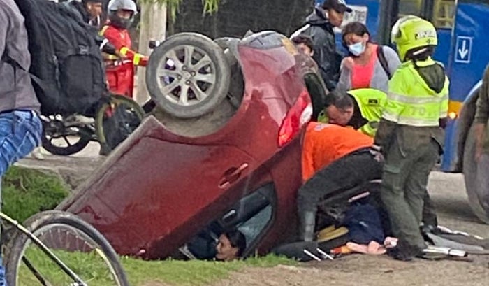 En la tarde de este jueves 6 de octubre, se reportó un accidente en el que está involucrado un vehículo particular que colisionó contra un andén y se volcó en la vía Cota, con carrera 111, localidad de Suba.
