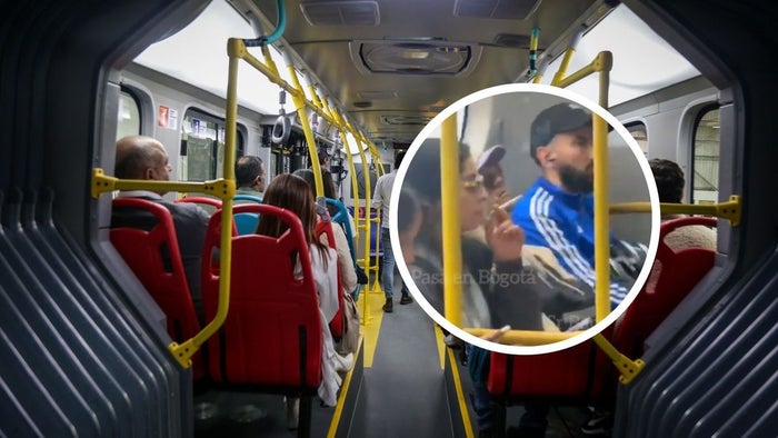 Composición | Colprensa - Captura de pantalla X (@PasaenBogota) Pillan a mujer fumando en bus de TransMilenio.