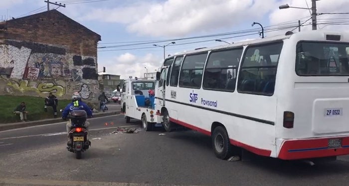 El choque de los dos automotores se registró en la Avenida 1 de Mayo con transversal 5 este, en el sur de la capital colombiana.