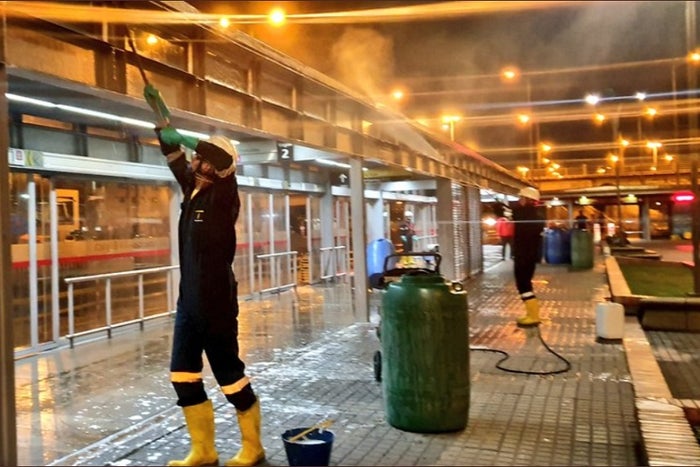 Desde hace unos días un equipo de limpieza especializado de entre 30 y 90 personas iniciaron las labores de aseo en horas de la noche, haciendo uso de cloro en concentraciones elevadas iguales a las que usan en los centros de salud.