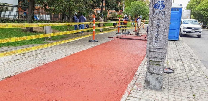 La intervención con este material proporciona una estructura antideslizante y de color que no permite el paso del agua y genera seguridad para el ciclista.