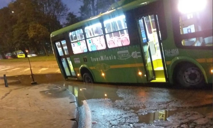 Se trataba de un SITP que estaba circulando por la zona cuando quedó estacionado en la mitad de un charco que se formó por las constantes lluvias.