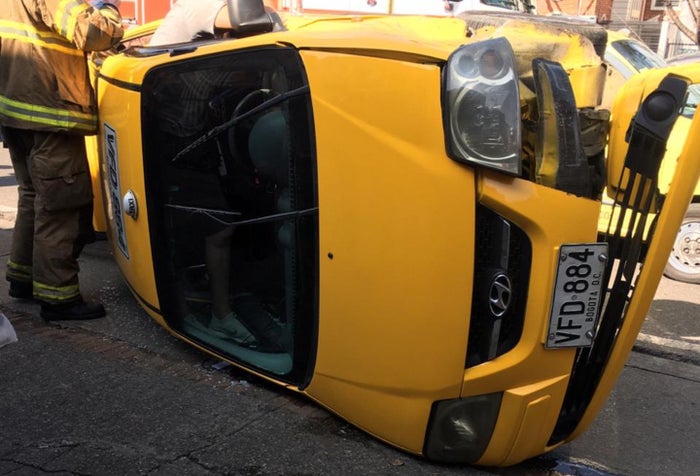 El taxi de placas VFD 884 se volcó a un costado de la vía, creando una fuerte congestión vial en la zona. Bomberos de la estación Chapinero a esta hora brindan atención prehospitalaria a dos personas y tras varias maniobras lograron rescatar al conductor que quedó atrapado dentro del vehículo de servicio público.