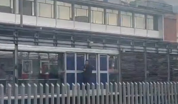 Sin embargo, el sujeto siguió intentando abrir la puerta y esperó a que pasara un Transmilenio para finalmente conseguir lo que quería.