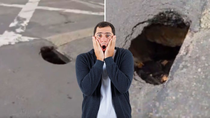 Imágenes del hueco en la vía y ciudadano sorprendido