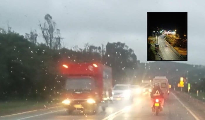 "Reducción de carril en el kilómetro 39+600, tránsito bidireccional desde Naranjal hasta Mesa Grande por los túneles de la nueva calzada, paso a un carril en el kilómetro 69+350. Lluvias en varios sectores", precisa la concesionaria de la vía al Llano.