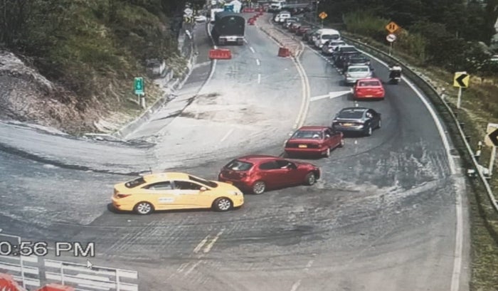 "Se presentan enormes trancones antes de llegar al kilómetro 18, donde el paso se mantiene alternando por el derrumbe que cayó el 7 de septiembre y que obliga que las autoridades implementen el sistema 'semáforo' para garantizar la evacuación de carros subiendo y bajando hacia el Llano", denuncian los usuarios.